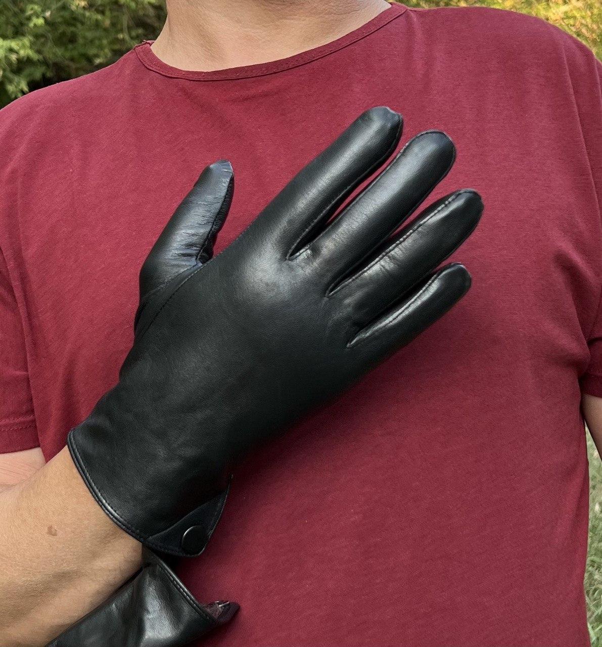 Чоловічі рукавички з плюшевою підкладкою – це прекрасне поєднання стилю та комфорту для холодних днів. М'яка плюшева підкладка забезпечує тепло та затишок, а елегантний зовнішній вигляд робить їх универсальними для будь-якого гардеробу. Ці перчатки захищати руки від холоду, зберігаючи при цьому стильний вигляд.